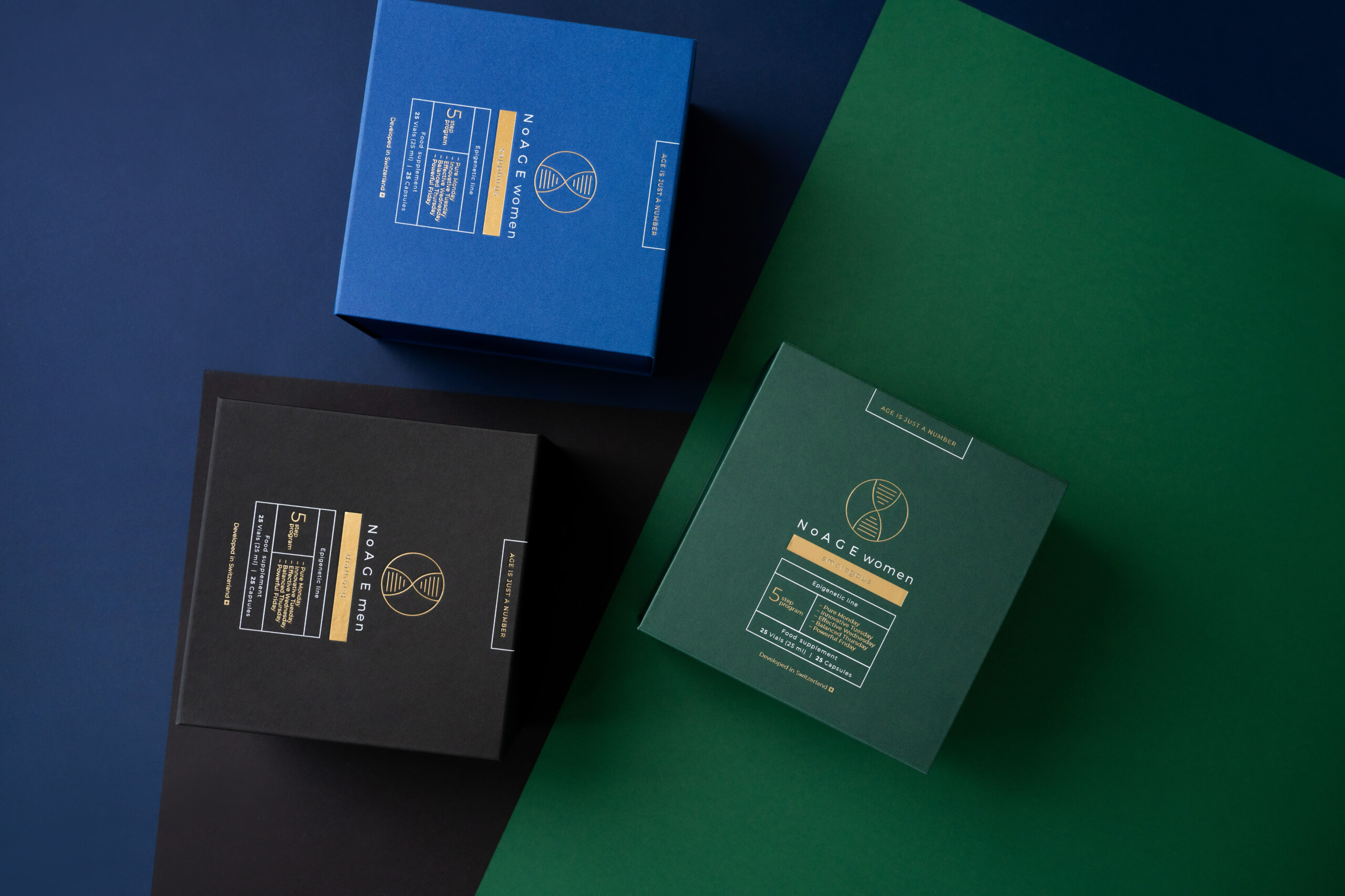 NoAGE – epigenetikos principais paremti ir mokslu pagrįsti produktai, sukurti kartu su Šveicarijos mokslininkais. Tai inovatyvus ilgaamžiškumo sprendimas, skirtas padėti išsaugoti jaunystę, veržlumą, grožį bei energiją. Šie maisto papildai – sprendimas šiuolaikiniam žmogui, kuris rūpinasi savo savijauta ir gyvenimo kokybe.