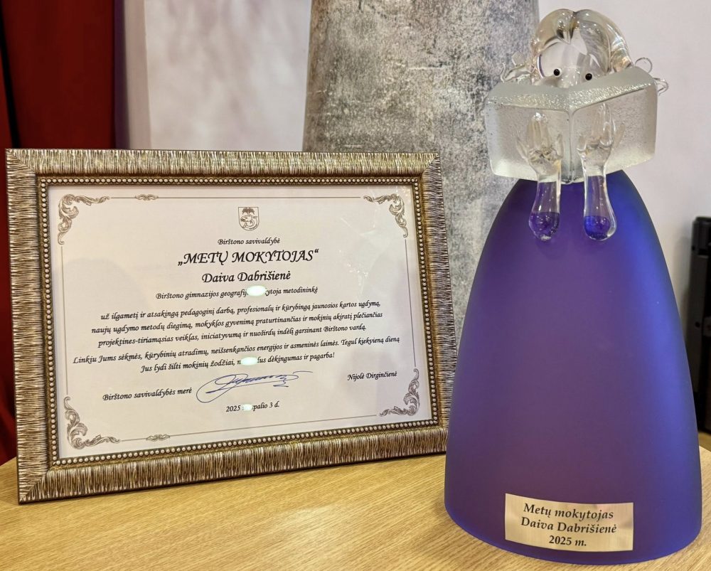 Birštono savivaldybės Švietimo, kultūros ir sporto skyriaus vedėja padėkas įteikė Birštono vaikų lopšelio-darželio „Vyturėlis“ vyresniajai mokytojai Kristinai Mulerčikienei, Birštono gimnazijos pradinių klasių vyresniajai mokytojai Jolitai Simonaitytei, Birštono meno mokyklos dailės vyresniajai mokytojai Rasai Mekionienei ir muzikos vyresniajam mokytojui Kęstučiui Didvaliui.