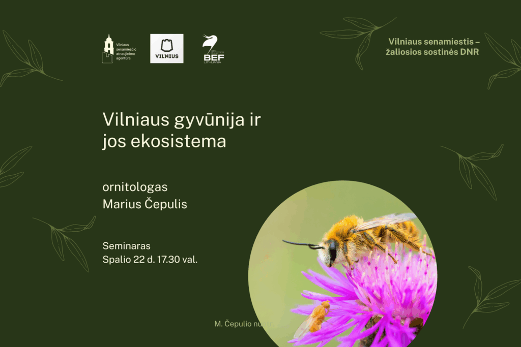 Spalio 22 d. 17.30 val. kviečiame į gyvą ir įkvepiantį ornitologo Mariaus Čepulio seminarą „Vilniaus gyvūnija ir jos ekosistema“, kuriame bus kalbama apie tai, ką iš tiesų reiškia būti gyvam Vilniuje – ne tik žmogui, bet ir zyliukei, miegapelei, šikšnosparniui ar vabaliukui po grindinio akmeniu. Renginys yra paskutinė aplinkosauginio švietimo ciklo „Vilniaus senamiestis – žaliosios sostinės DNR“ dalis.