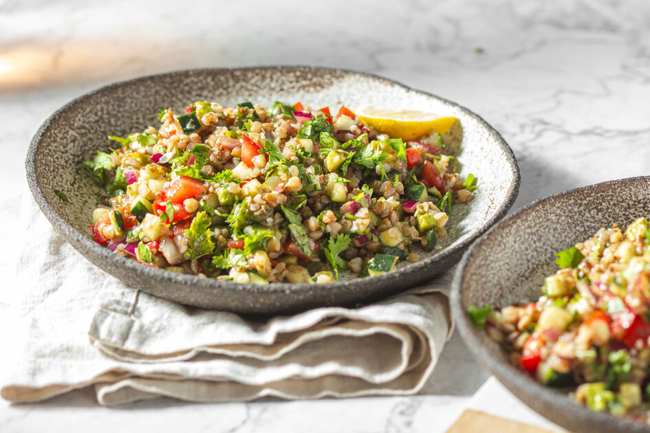 Ir garnyrui prie grilio patiekalų, ir lengviems pietums – grikių salotos su daržovėmis