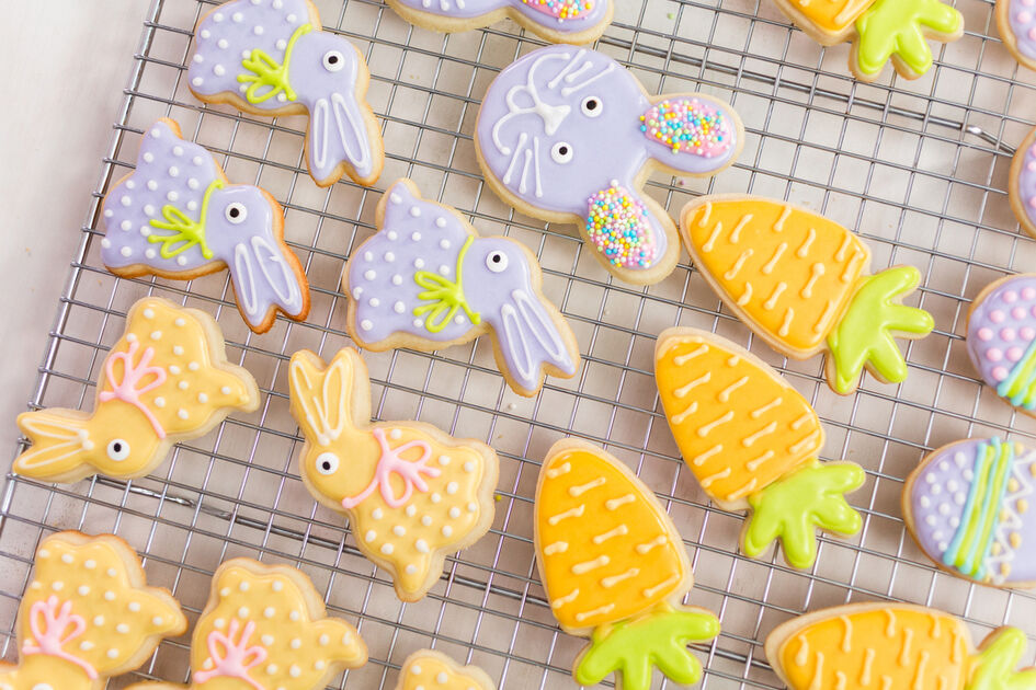 Velykiniams sviestiniams sausainiams reikės: 230 g „Rokiškio“ saldžios grietinėlės sviesto iš IKI (kambario temperatūros), 150 g Panevėžio cukraus Plius, 1 IKI kiaušinio, 1 šaukštelio vanilės ekstrakto, 350 g IKI miltų, žiupsnelio druskos. Papuošimui: 2 šaukštų cukraus pudros, šlakelio citrinos sulčių, maistinių dažų (pasirinktinai).