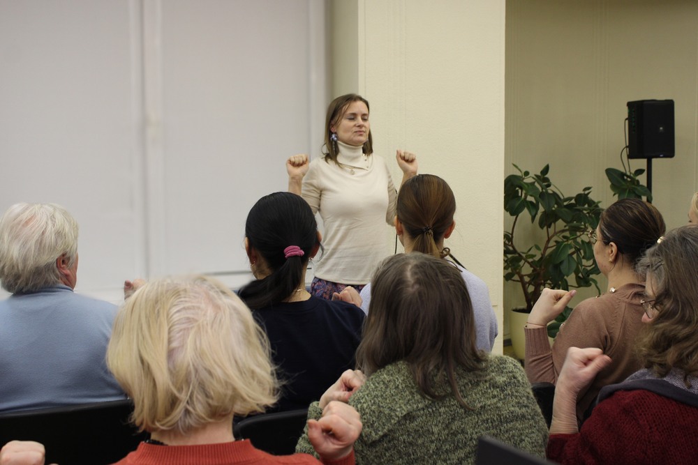 Užsiėmimo metu viešnia dalijosi žiniomis apie kvėpavimo svarbą fizinei ir emocinei savijautai, streso mažinimą ir emocinės pusiausvyros stiprinimą. Diskutavo apie tai, kokie yra streso šaltiniai, kaip pasiekti vidinę tylą. Įdomu tai, kad pagal išsilavinimą ji – teisininkė, ilgus metus dirbusi advokatūros srityje, todėl apie įtampą ir stresą kalbėjo ne tik teoriškai, bet ir iš asmeninės patirties.