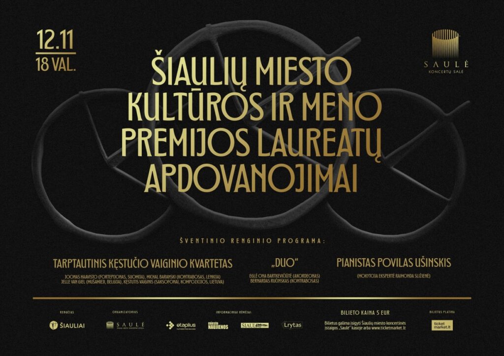Iškilmingas Šiaulių miesto kultūros ir meno premijų įteikimas ir jaunųjų menininkų stipendininkų pristatymas vyks 2025 m. gruodžio 11 d. 18 val. koncertinėje įstaigoje „Saulė“