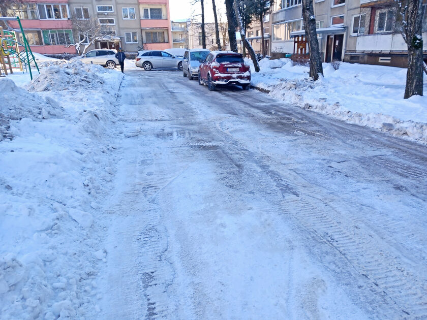 Po paskutinio didesnio snygio praėjo jau šiek tiek laiko ir daugelis atsiduso: gatvės pamažu „prasivalė“, šaligatviai – taip pat. Tačiau sniegą žadant ir toliau, tikrasis išbandymas daugiabučių kiemuose dar nesibaigė. Buvusių pūgų padarinių dar nepamiršome: vienur pusnys užvertė pravažiavimą, kitur suformavo „bortus“ palei automobilius ir provėžas privažiavimuose; o kai kur įvažiavimas į požeminę parkavimo aikštelę virto čiuožykla.