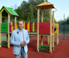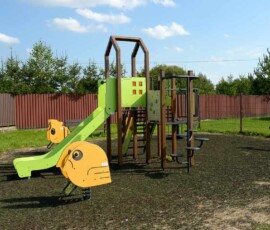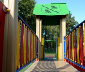 Vaikų džiaugsmui skirtoje erdvėje – multifunkcinis namelis, įvairios sūpynės ir karuselė. Objektas stebimas vaizdo kamera, o tamsiu paros metu apšviečiamas LED šviestuvais.