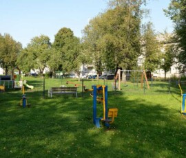 Šalia šios aikštelės už seniūnijos lėšas taip pat įrengta penkių lauko jėgos treniruoklių zona. Visa teritorija aptverta, apšviesta LED šviestuvu, o po sūpynėmis paklota saugi korėta guminė danga.