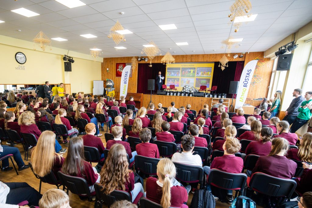 Auditorijai, kurią sudarė 130 ketvirtų–šeštų klasių moksleivių, futbolo atstovai papasakojo apie futbolą, pasidalino savo karjerų patirtimis, taip pat atsakinėjo į vaikų klausimus, kurių tikrai netrūko.