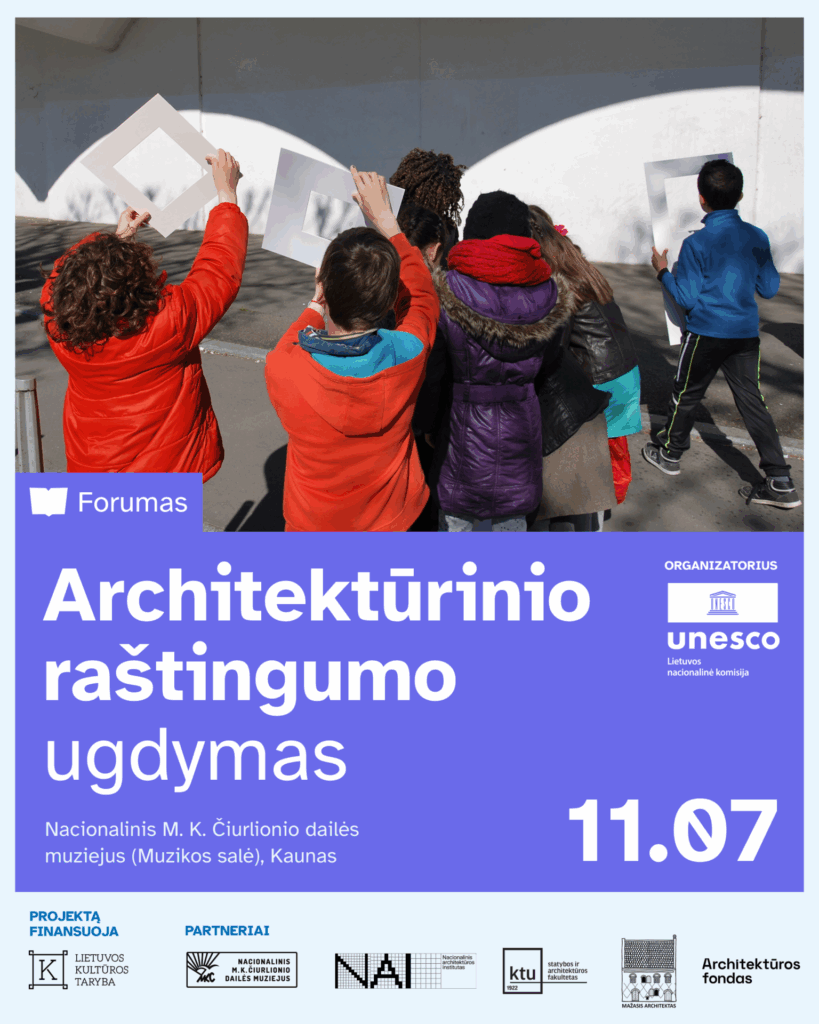 Lietuvos nacionalinė UNESCO komisija lapkričio 7 d. Kaune organizuoja forumą „Architektūrinio raštingumo ugdymas“, kuris jau trečius metus kviečia dialogui apie architektūrinį vaikų ir jaunimo švietimą, sudaro platformą patirties mainams, prisideda prie geresnio architektūrinio raštingumo reikšmės visuomenėje supratimo. Šiemet renginyje patirtimi dalinsis Isère architektūros centro (Prancūzija), KTU Statybos ir architektūros fakulteto, Architektūros fondo projekto „Open House Vilnius“ ir Nacionalinio architektūros instituto atstovai.