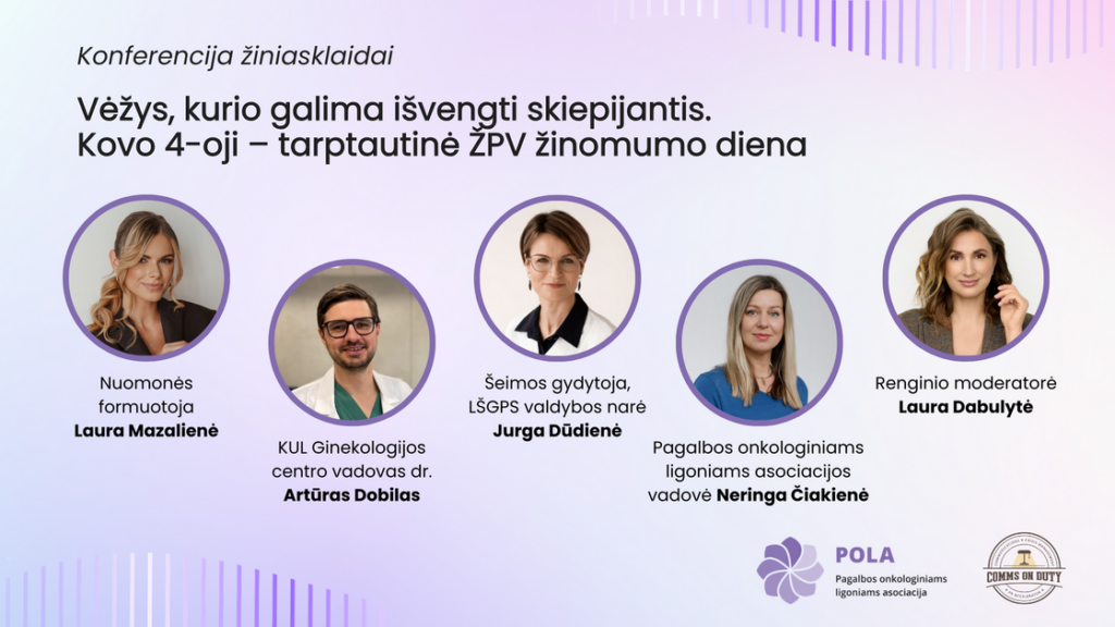 Kovo 4 d. 10:00 val. BNS Spaudos centre (Kęstučio g. 25) įvyko konferencija žiniasklaidai, kurioje buvo pristatytas 2026-ųjų vasario mėn. atliktas gyventojų nuomonės tyrimas dėl vėžio prevencijos ir ŽPV. Šios srities gydytojai apžvelgė, ko trūksta Lietuvai, kad įgyvendintų Pasaulio Sveikatos Organizacijos ir Europos Komisijos nustatytą tikslą – iki 2030-ųjų eliminuoti gimdos kaklelio vėžį.
