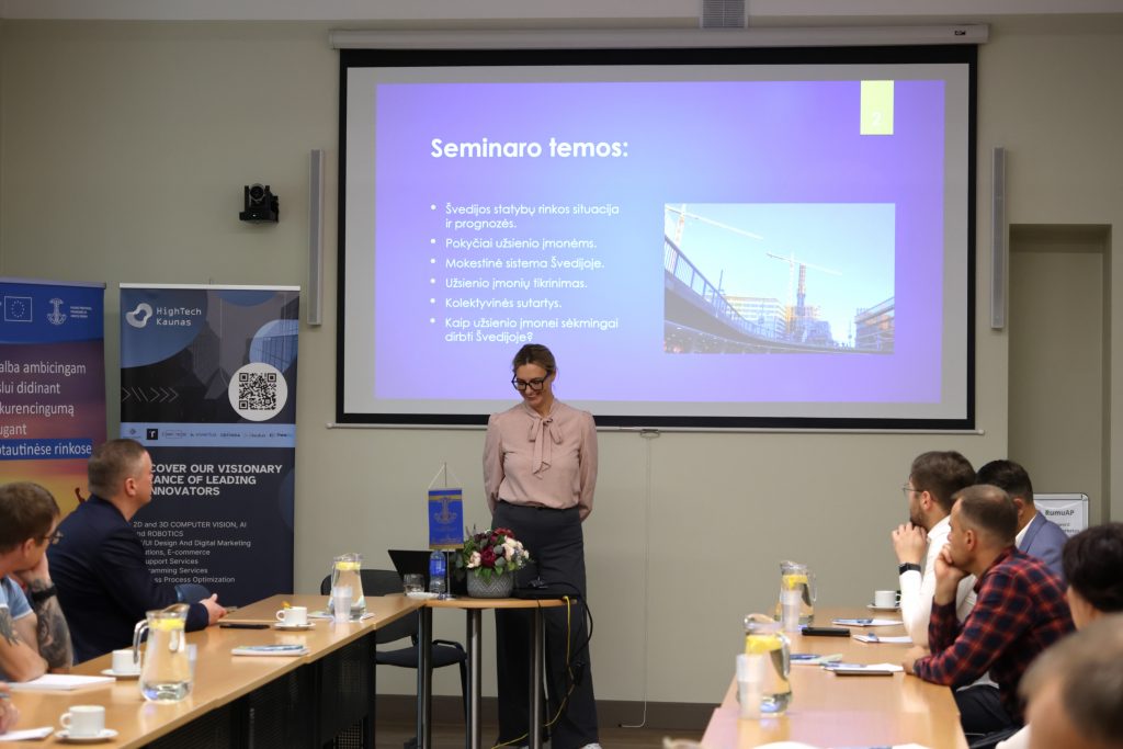 Spalio 1 d. Kauno prekybos, pramonės ir amatų rūmuose vyko seminaras „Švedijos statybų rinka lietuviškoms įmonėms 2025-2026“, kurį organizavo KPPAR kartu su konsultacine įmone „Konsultacijos Baltijos ir „Enterprise Europe“ tinklas. Renginyje dalyvavo rangovai, subrangovai, eksporto, teisinio ir personalo sričių specialistai.