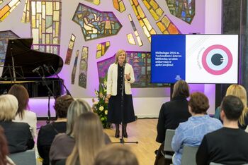Nacionalinės bibliotekos generalinė direktorė Aušrinė Žilinskienė. Ji padėkojo šalies bibliotekininkams už kruopštų darbą visuomenės ir valstybės labui.