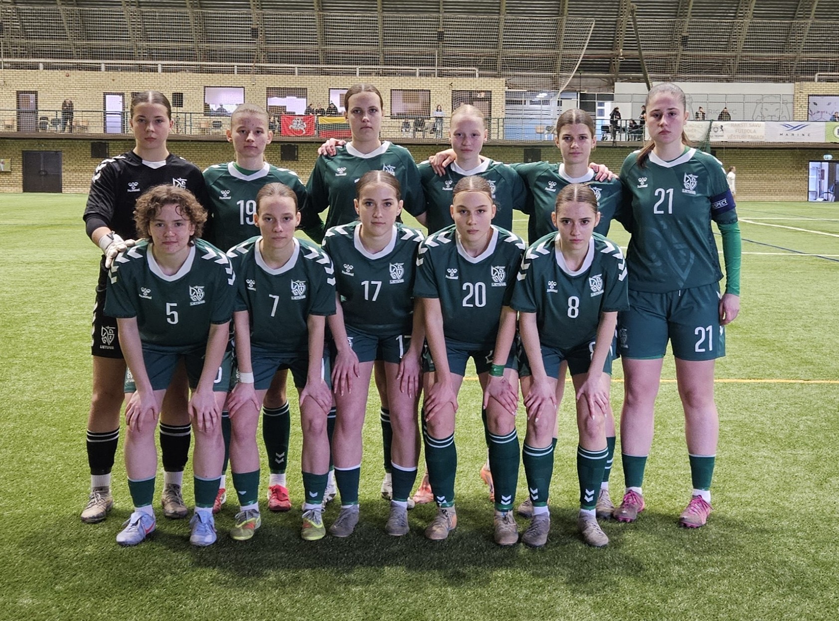 Lietuvos rinktinės startinė sudėtis: Ieva Kaminskaitė, Patricja Penkauskaitė (80 min. Miglė Grauslytė), Elzė Kiškūnaitė (67 min. Shantale Korol), Ugnė Jonelytė, Agata Marija Kairytė (67 min. Augustė Augėnaitė), Austėja Jokubaitytė, Elena Ostrauskaitė (89 min. Adelė Stalnionytė), Estela Tamošauskaitė, Austėja Pocevičiūtė (80 min. Ema Valiukevičius), Laura Grucytė, Jotvilė Šapaitė.