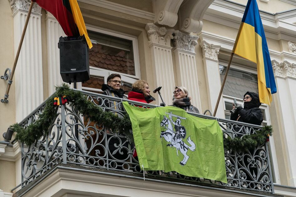 – Vasario 16-osios ceremonialas prie Signatarų namų iš Laisvės balkono;