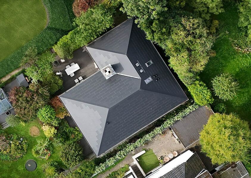 Greta šio sprendimo pristatoma ir viena iš pagrindinių „METSOLAR“ partnerių, Danijos kompanijos „Solartag“ siūloma danga „Troof“, kurią architektai ypač vertina dėl jos visiškos integracijos ir estetinio išbaigtumo. Tai nėra ant viršaus montuojami skydai – patys moduliai tarnauja kaip stogo danga, pasižymi matine juoda spalva, kuri vizualiai nesiskiria nuo aukščiausios klasės tradicinių čerpių. Ši danga sukurta taip, kad atitiktų griežčiausius estetikos ir šviesos atspindėjimo standartus, todėl ji idealiai tinka tankiai apgyvendintoms miesto teritorijoms, kur blizgesys gali būti ribojamas.