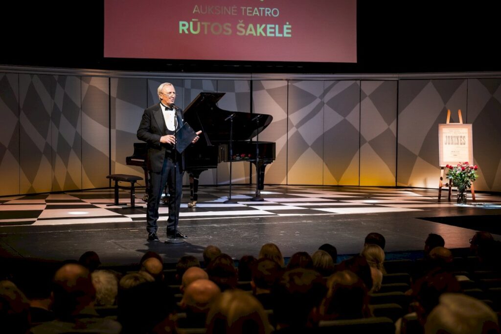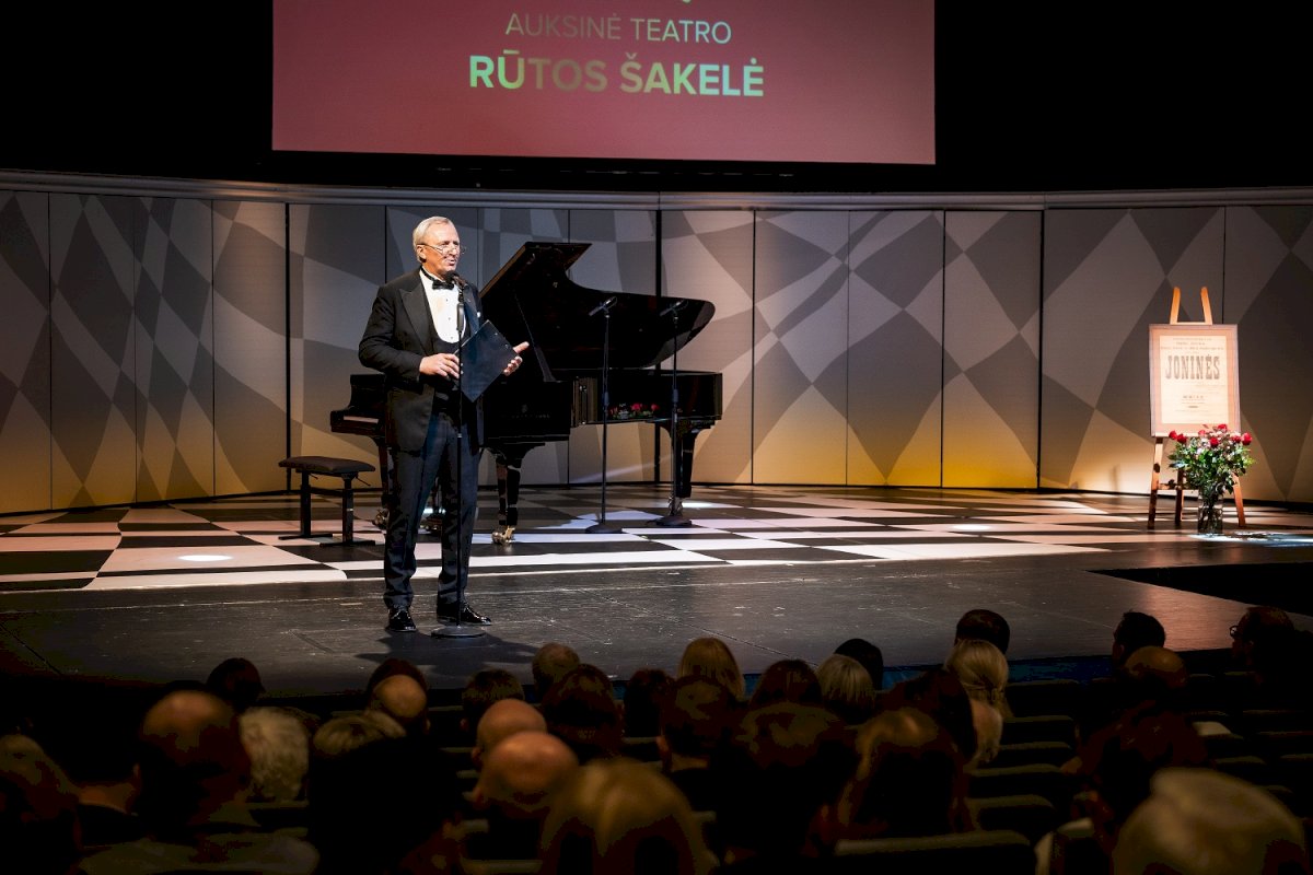 „Sveikinu visus su teatru gimtadieniu ir palinkėsiu, kad šioje scenoje gyvo teatro aktoriaus neužgožtų technologijos.“