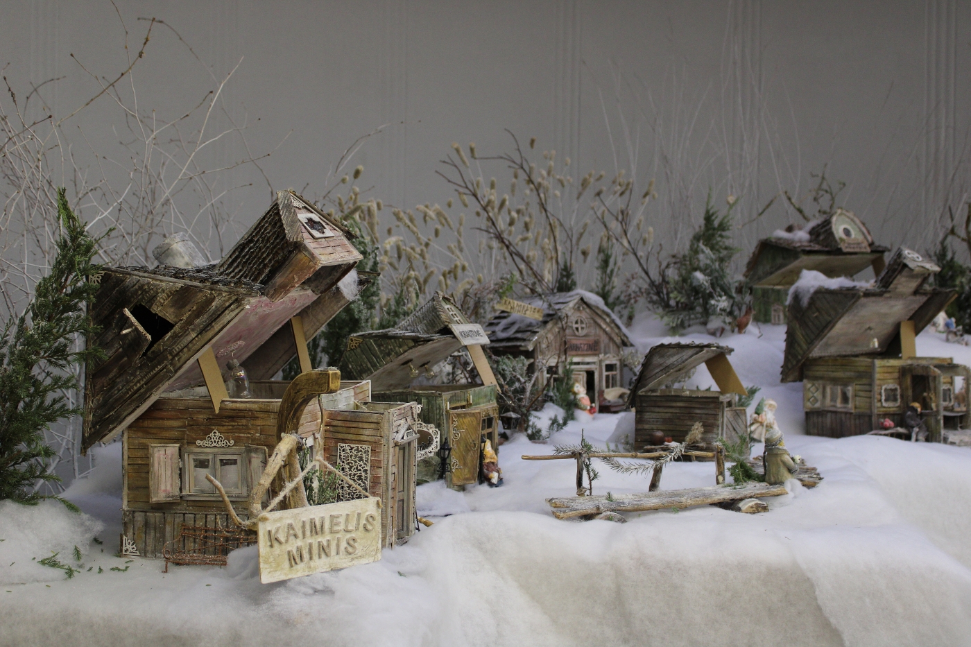 Smėlynės bibliotekoje visą gruodį eksponuotas „Kaimelis Minis“ tapo gyvų pokalbių vieta.