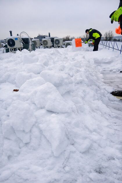 Plokščias stogas „nesiskundžia“. Nėra nuošliaužos, kuri sukelia triukšmą. Nėra varveklių, kurie matytųsi nuo šaligatvio. O sniegas kaupiasi, sluoksniuojasi ir, atšilus orui, drėksta, todėl apkrova konstrukcijoms gali priartėti prie kritinės. „Civinity“ ekspertų apžiūrų metu kai kuriuose administruojamuose pastatuose sniego sluoksnis ant sutapdintų stogų vietomis siekė apie 40 cm ir daugiau; toks kiekis šlapio sniego sveria daugybę tonų.