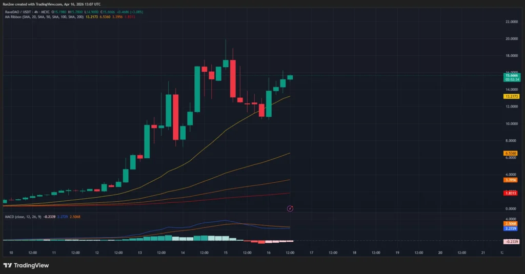 - Biržų nutekėjimas ir aukšti techniniai rodikliai rodo, kad RAVE gali pabandyti dar vieną pakilimą link naujos aukščiausios vertės virš 20 USD.