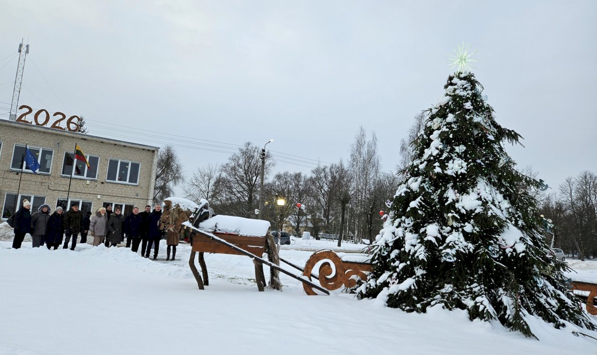 Į 2026-uosius Arklio metus panemuneliečių kalėdinė eglutė atkeliavo rogėse, kurias traukė arklys – pačių rankomis meistriškai sukurtas, su visomis detalėmis, karčiais, pakinktais.