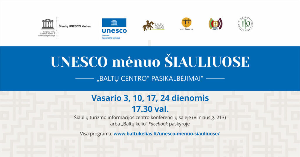 Šiauliai vasario mėnesį kviečia į prasmingų pokalbių ciklą, skirtą UNESCO mėnesiui mieste. Kiekvieną vasario antradienį, 17.30 val., Šiaulių turizmo informacijos centro salėje ir nuotoliniu būdu bus kalbama apie vertybes, kurios formuoja mūsų tapatybę – švietimą, kultūrą, kalbą.