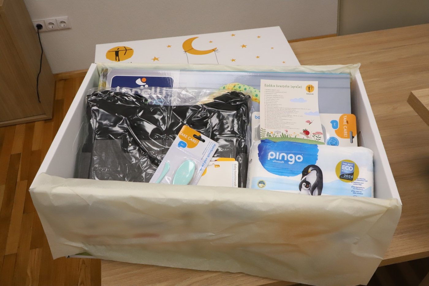 Naujagimio mamai įteikta gėlių puokštė, o visai šeimai – kūdikio kraitelis, kuriame tėveliai gali rasti rankšluostį su gobtuvu, pledą, flanelinių vystyklų, marlės, šliaužtinuką, smėlinuką, kojinyčių, miego žaislą, seilinuką, sauskelnių, neperšlampamų paklotų, bekontaktį termometrą, nagų žirklutes, mamos krepšį, patalynę ir daug kitų pirmiesiems metams reikalingų priemonių.
