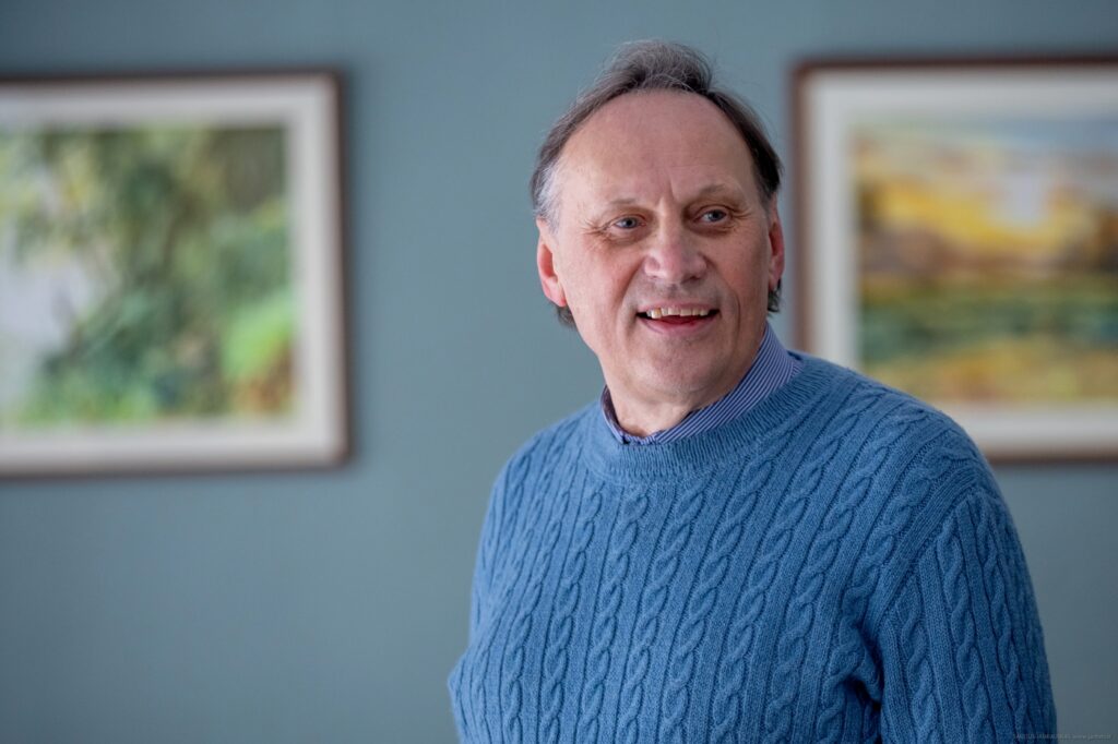 „Kita technika – neperšviečiama. O čia…“ – šypteli jis ir pasakoja, kad gamtos vaizdus jis lieja, žiūrėdamas į fotografijas, kurias pasidarė, apylinkes užfiksuodamas fotoaparatu.
