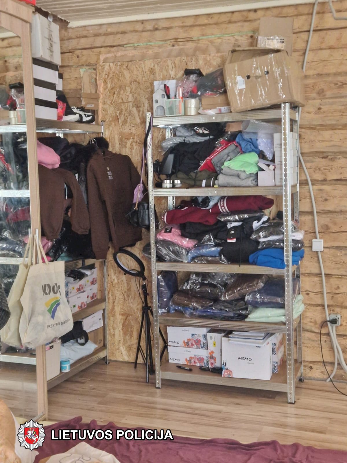 Moters namuose rasta ir konfiskuota didelis kiekis įtartinų prekių – marškinėlių, kelnių, sportinės avalynės ir kitų daiktų, pažymėtų „Adidas“, „Nike“, „Hugo Boss“, „UGG“, „Calvin Klein“, „Fila“, „Emporio Armani“, „Guess“, „Miu Miu“ ir kt. prekių ženklais.