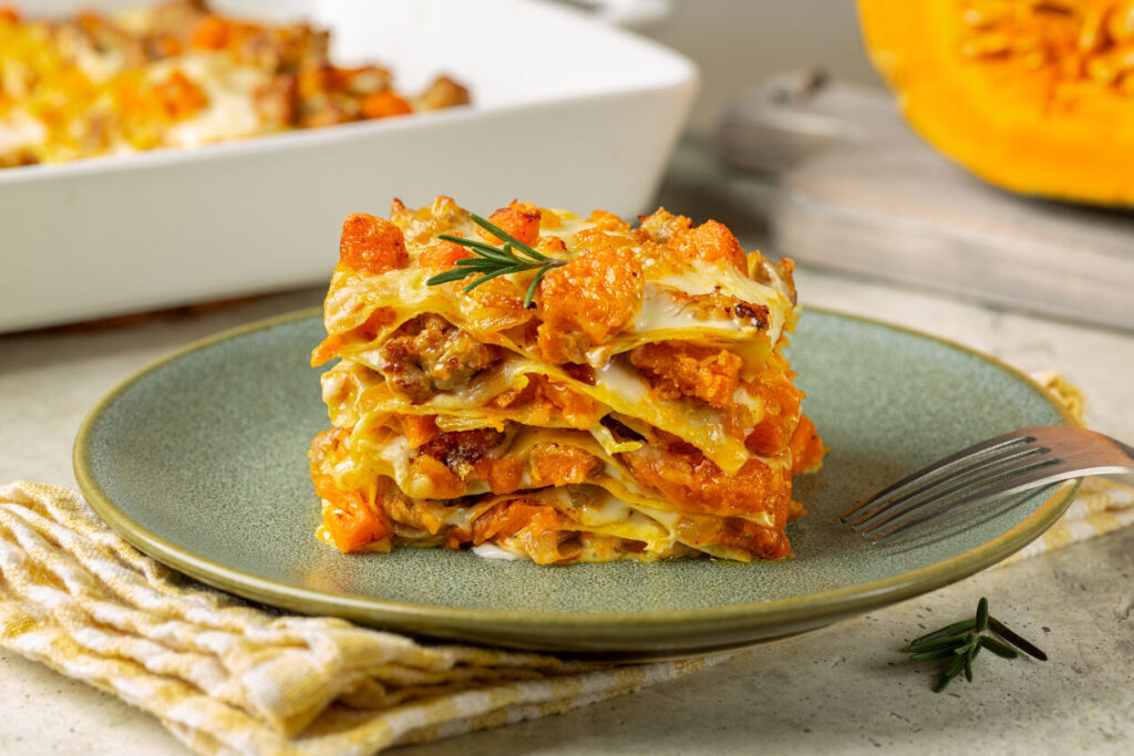 Spalvinga moliūgų ir kitų daržovių lazanija