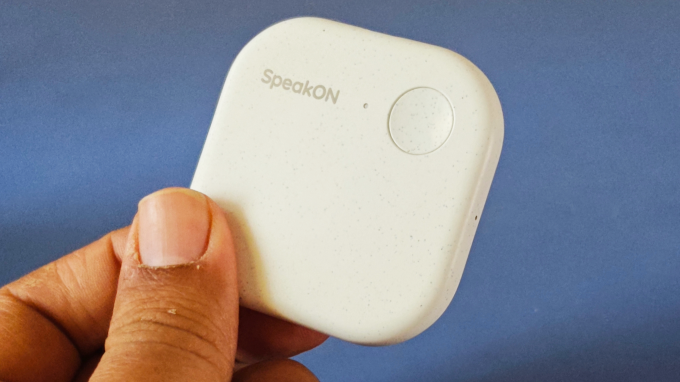 „SpeakOn“ yra mažas akmenuką primenantis įrenginys, kuris gali prilipti prie „iPhone“ galinės dalies per „MagSafe“, kaip ir „Plaud“ AI susitikimų užrašų knygelė. Prietaisas yra labai lengvas – 25 gramai, todėl nejausite jo svorio, net jei įsidėsite jį į kišenę atskirai.