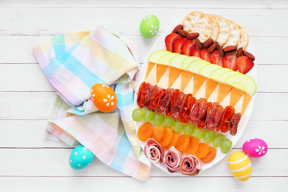 Tai bene paprasčiausias būdas nustebinti svečius – jokio gaminimo, tik kūrybiškas dėliojimas. Užkandžių lėkštė, suformuota margučio forma, primena, kad Velykų stalui papuošti kartais pakanka vien geros idėjos ir spalvingų produktų.