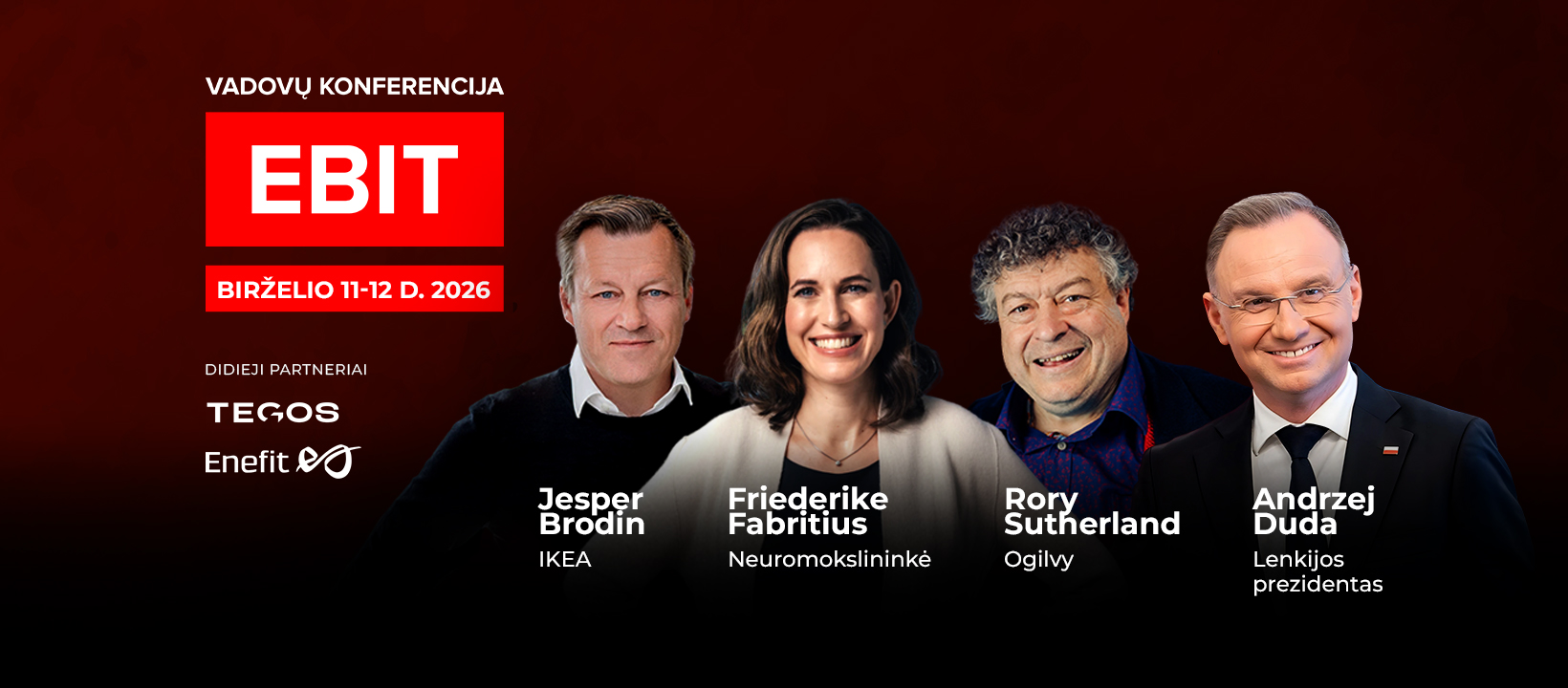 Ar jau rezervavote vietą birželio 11–12 d. vyksiančioje Vadovų konferencija EBIT 2026? Kviečiame paskubėti ir būti ten, kur susitiks sprendimų priėmėjai, lyderiai ir organizacijų vadovai, kurie ne tik stebi pokyčius, bet juos kuria.