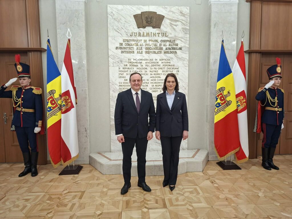 Vidaus reikalų ministras Vladislavas Kondratovičius darbo vizito Kišiniove metu susitiko su Moldovos vidaus reikalų ministre Daniela Misail-Nichitin ir dalyvavo Europos Sąjungos finansuojamo projekto „EU4REFORMS – DNR“ uždarymo renginyje.