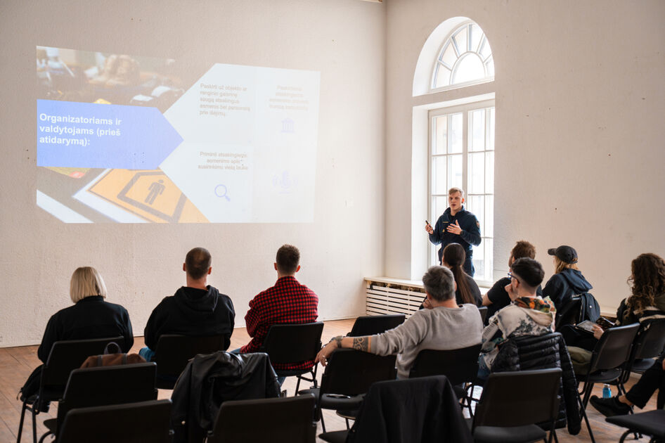 Kovo 17 d. vykusiame susitikime su Vilniaus naktinio gyvenimo atstovais buvo išsamiai pristatytos šios rekomendacijos, aptartos dažniausiai pasitaikančios rizikos ir praktiniai sprendimai. Vilniaus priešgaisrinės gelbėjimo valdybos atstovas Osvaldas Vladarskis pristatė 2025 m. gaisrų gelbėjimo darbų statistikos analizę, pagrindines gaisrų ir žūčių priežastis bei kitą aktualią gaisrinės saugos informaciją. Taip pat pristatyti atliktų patikrinimų rezultatai ir su jais susijusios įžvalgos. Vietų atstovai turėjo galimybę tiesiogiai konsultuotis su specialistais ir gauti konkrečius atsakymus į jiems aktualius klausimus.