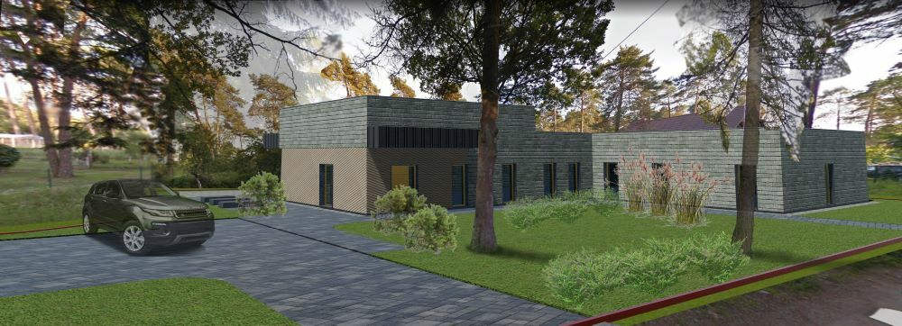Pastato fasadams parinktos medinės dailylentės, atspindinčios vietos gamtinį ir architektūrinį charakterį. Projektą rengė UAB „Rendu“. Šiuo metu yra paskelbtas šių grupinio gyvenimo namų rangos darbų pirkimas.