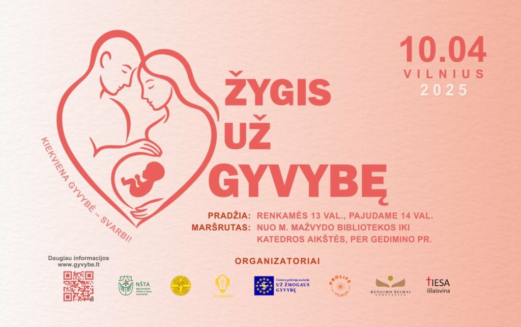 2025 m. Spalio 4 d. Vilniuje vyks pirmasis „Žygis už gyvybę“ – taikus visuomenės solidarumo renginys, kuriuo siekiama priminti, kad žmogaus gyvybės vertė yra nekintanti ir prigimtinė.