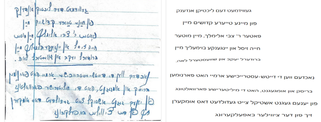 Šeimos istorija besidomintiems privatiems asmenims ši paslauga suteikia galimybę susipažinti su kelių kartų senumo jidiš ar hebrajų kalbomis rašytais laiškais, dienoraščiais ir dokumentais. Tekstų atpažinimas kartu su adaptacija ir vertimu į anglų ar lietuvių kalbą leidžia atsekti ir atkurti nežinomas šeimos istorijas ir geriau suprasti asmeninį bei kultūrinį paveldą.